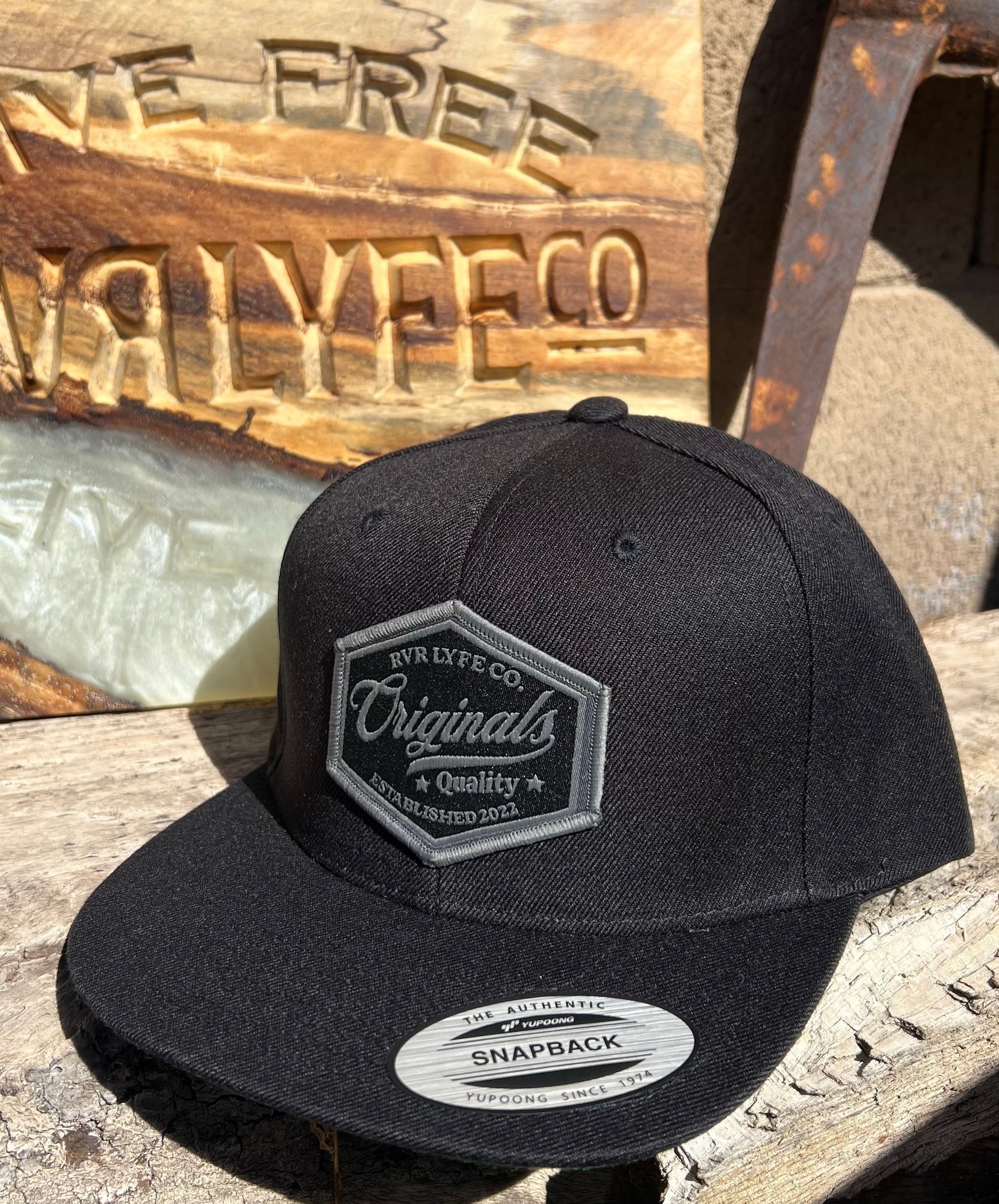 Solid black 6 panel Snapback with our new Rvrlyfe Originals patch logo on the front.